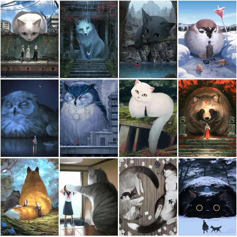 Алмазная живопись 5D сделай сам, специальная Алмазная вышивка, аниме-пейзаж, кот, алмазная живопись, большие животные, кристалл со стразами, домашний декор