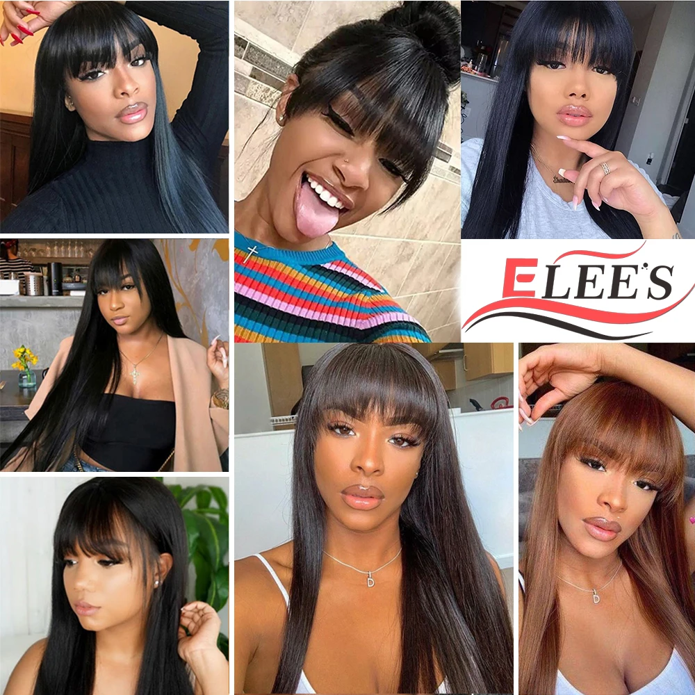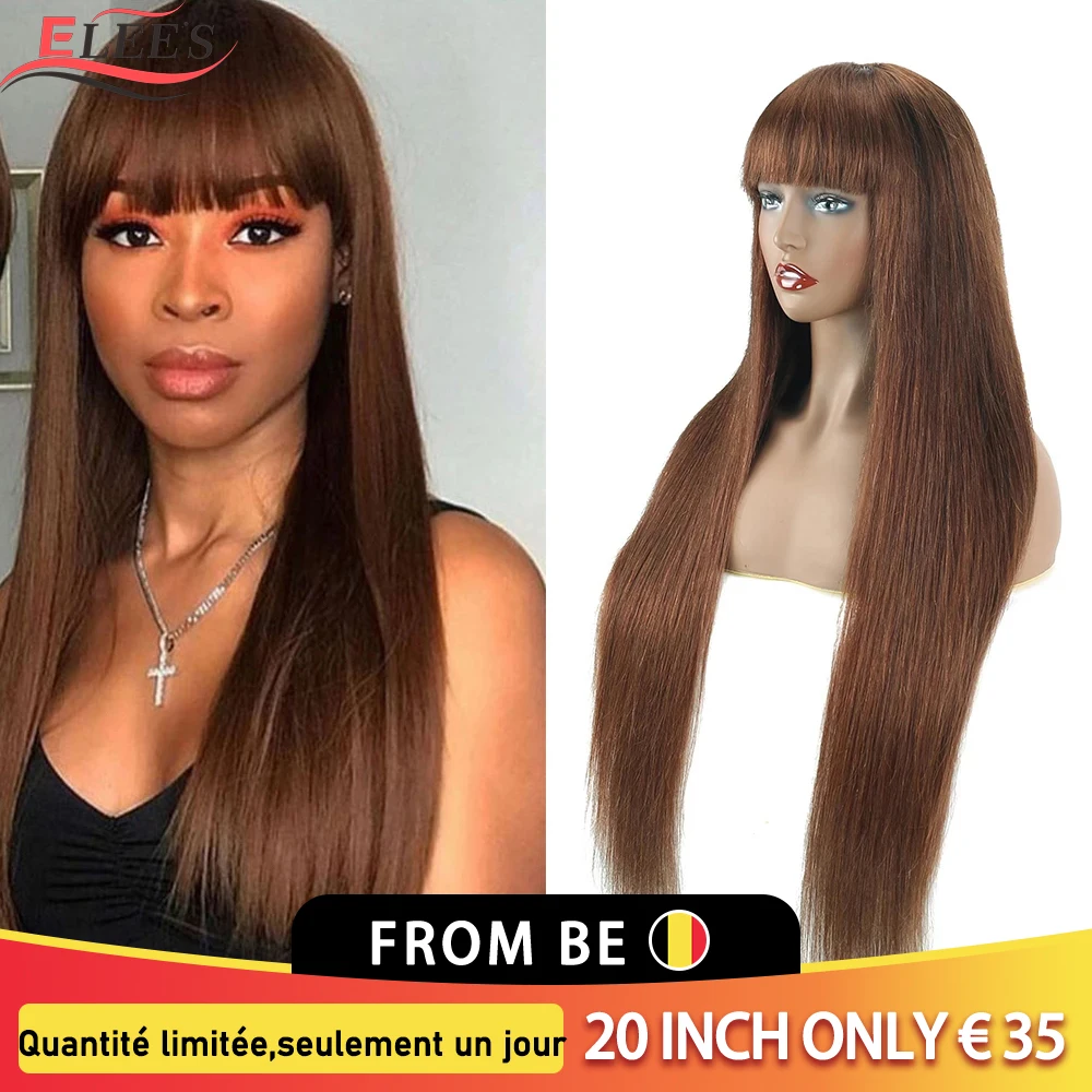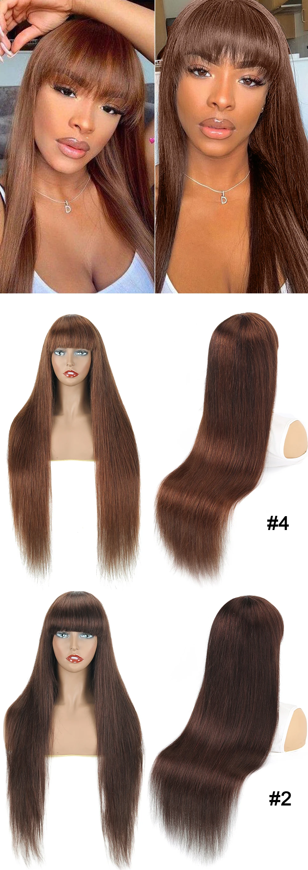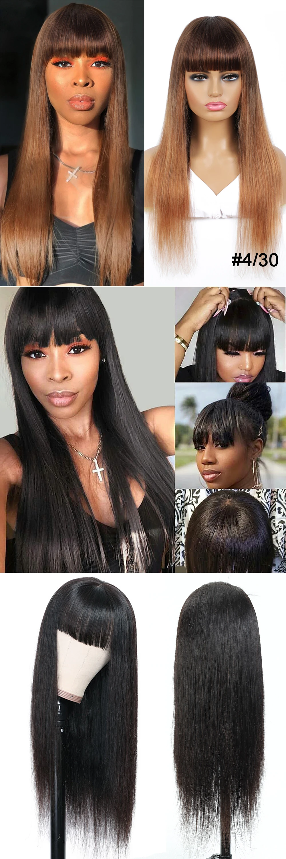 Парики из натуральных бразильских прямых человеческих волос с челкой, парик полностью машинной работы, парики Remy с Омбре, парики из коричневых человеческих волос для женщин, парики без клея