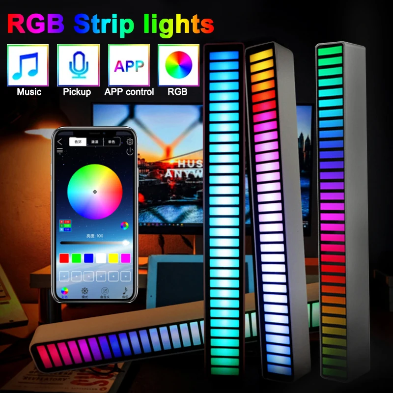 Светодиодная лента RGB для управления звуком, управление музыкой через приложение, лампы для создания ритма, освещение для создания атмосферсветильник у компьютера