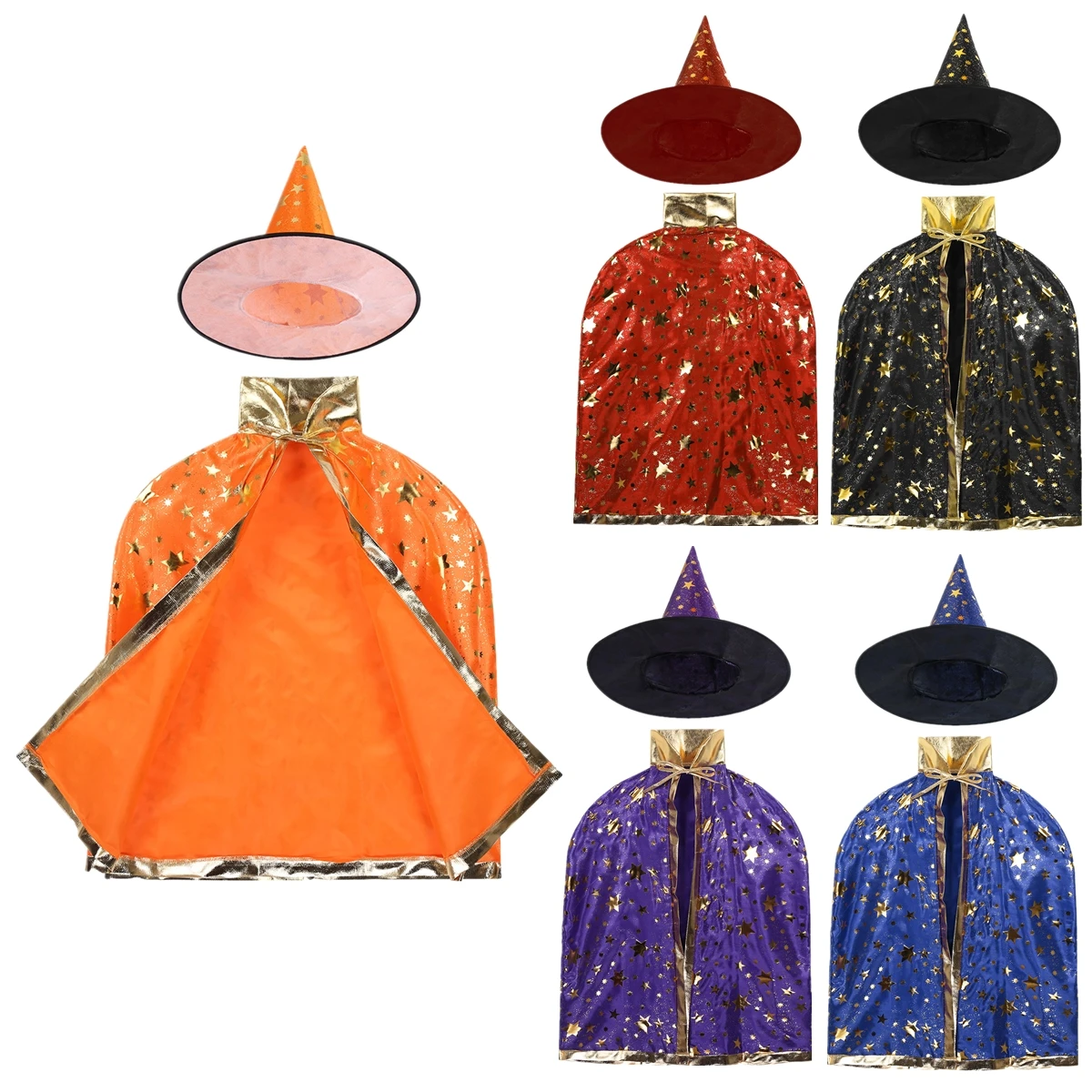 Детские костюмы на Хэллоуин с ведьмой накидка волшебника накидка с заостренной шляпой Набор Аниме Косплей Карнавальная вечеринка для мальчиков и девочек
