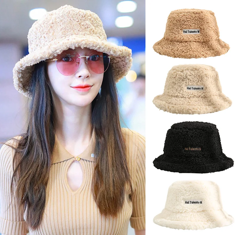 Панама из искусственного меха ягненка, зимние теплые бархатные шапки для женщин, Дамская утолщенная Панама, уличная Рыболовная Шапка, кепки