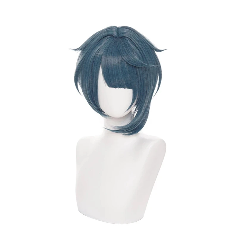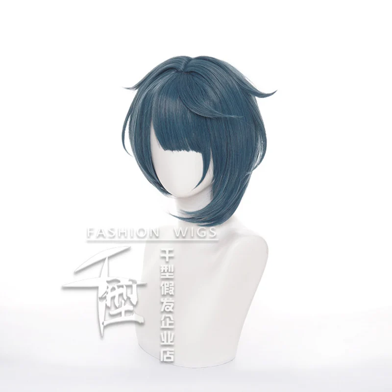 Парик для косплея Xingqiu Genshin Impact Xing Qiu темно-синие короткие термостойкие синтетические волосы для косплея парики + парик Кепка