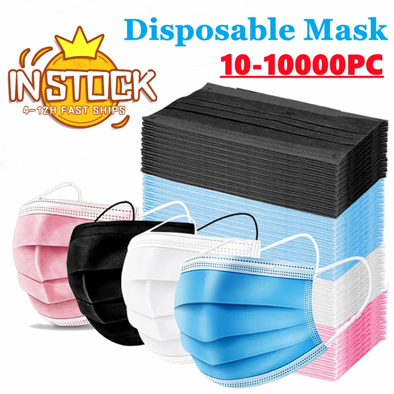 10 шт.-200 шт. одноразовые маски нетканые маски для лица 3-слойный фильтр Анти Пыль дышащая взрослая маска для рта чернаяВ наличии