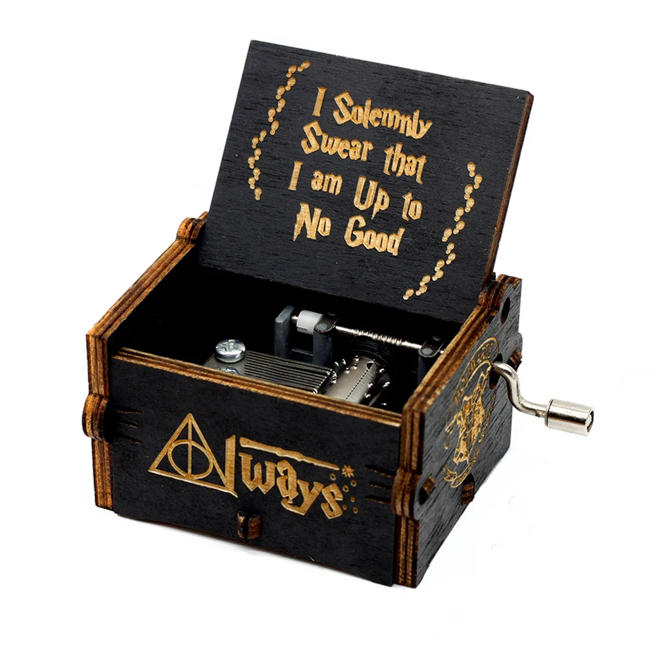 Деревянная музыкальная шкатулка с ручным приводом черная Атака Тита...