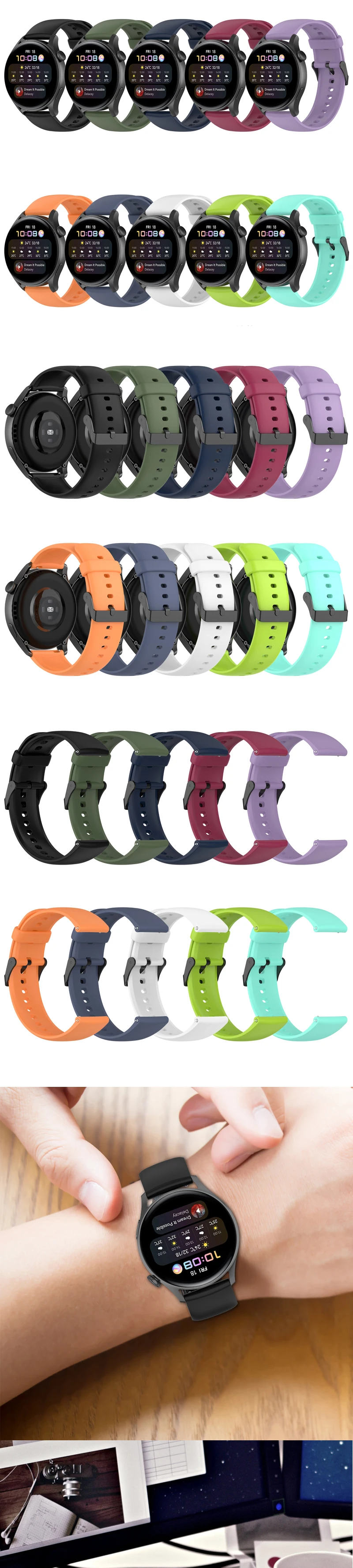 Силиконовый ремешок для Huawei Watch 3 3Pro GT 42mm GT 46 mm GT...