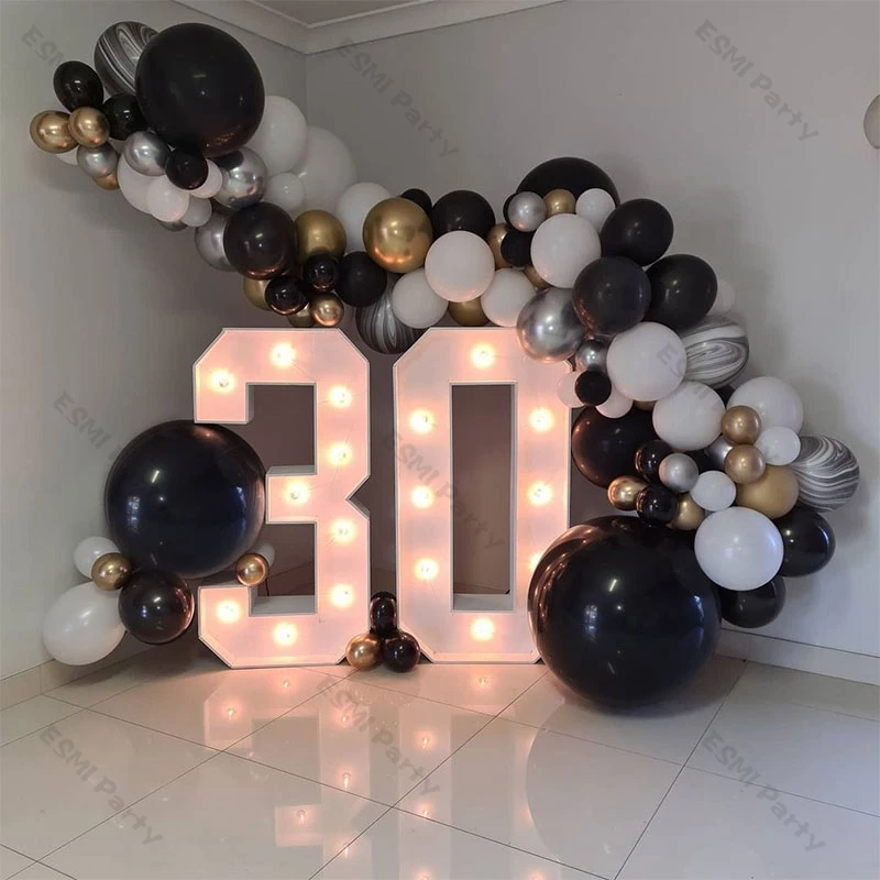 93 шт матовые черно-белые воздушные шары-гирлянды с цепочкой 30-летие украшения хромированные серебряные золотые шары арки вечерние украшения на день рождения