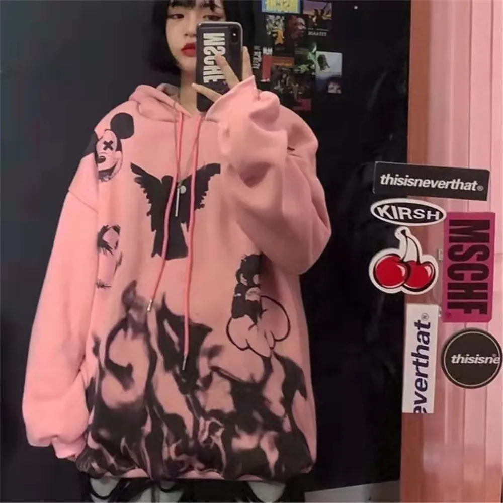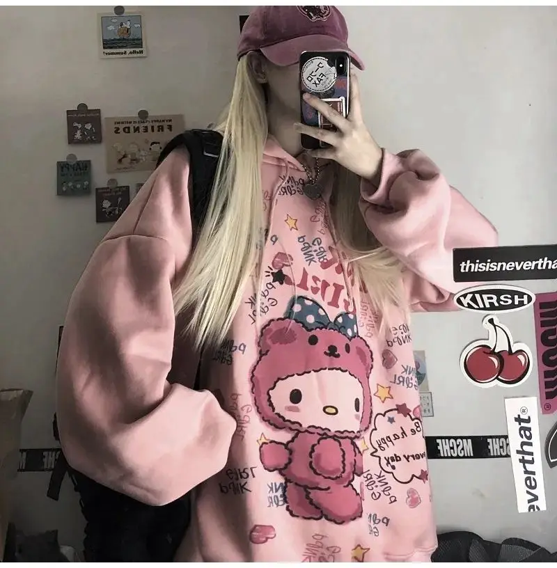 Женские толстовки в стиле аниме, осенняя кавайная модная Толстовка в стиле панк, корейские Топы с длинным рукавом и принтом, винтажные милые толстовки большого размера