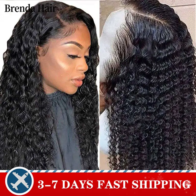 Парик из человеческих волос на сетке 13x 4, бразильский парик с глубокой волной, фронтальный Парик Hd на сетке, предварительно выщипанный парик для женщин, афро вьющийся