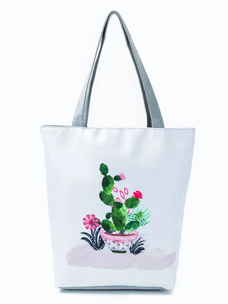 Симпатичные сумки с мультяшным принтом кактуса для женщин, высококачественные сумки на плечо, вместительная сумка для ланча, Классические уличные сумки