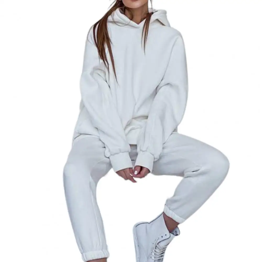 Спортивный костюм женский из двух предметов, однотонная толстовка с капюшоном и штаны, теплый повседневный зимний комплект одежды с длинным рукавом