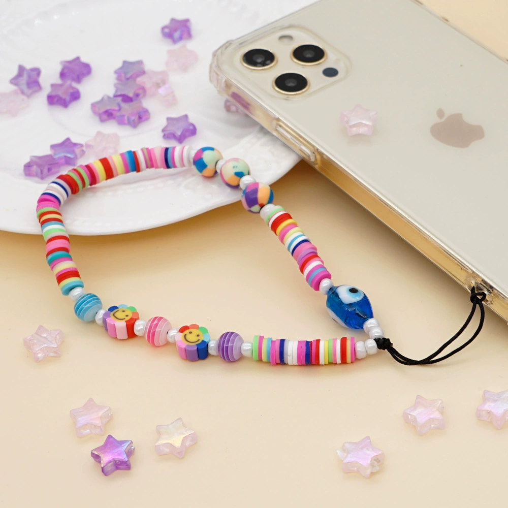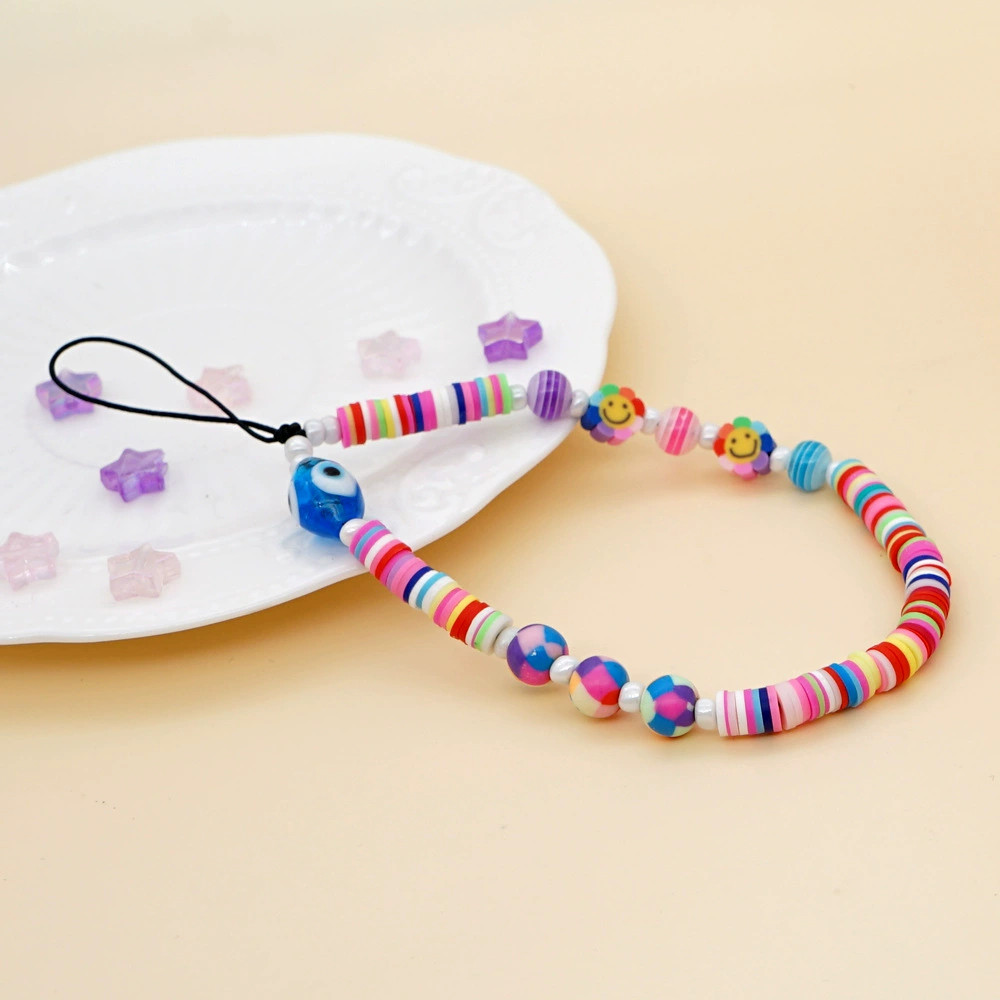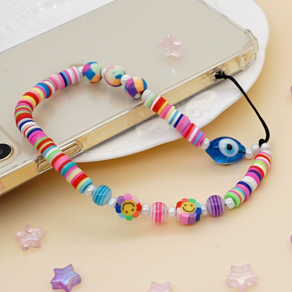 2021, модные уличные цепочки унисекс, мобильный телефон, женские, разноцветные, мягкие, Керамические цвета, яркие, смайлики, маргаритки, браслет, ремешок от потери