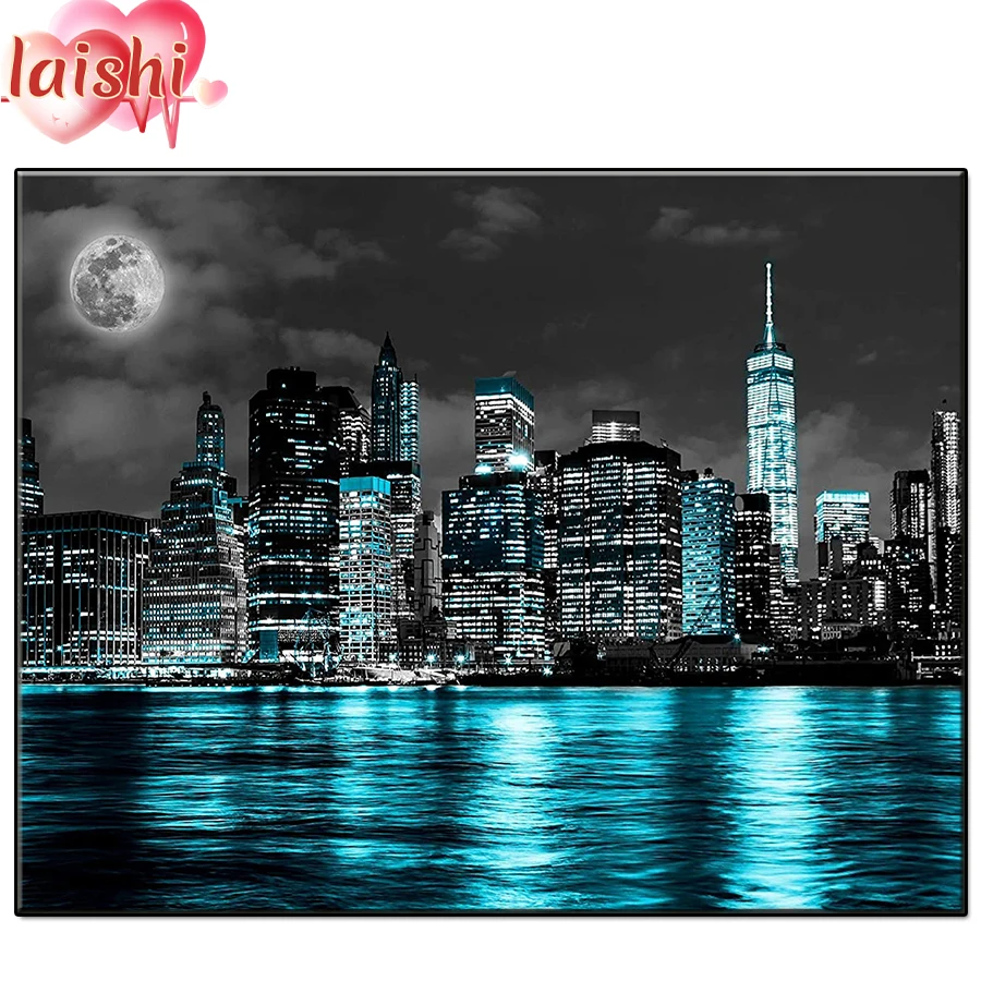 Алмазная картина ночного вида в стиле архитектуры города, полная квадратная круглая Алмазная вышивка, распродажа картин стразы, Алмазная мозаика
