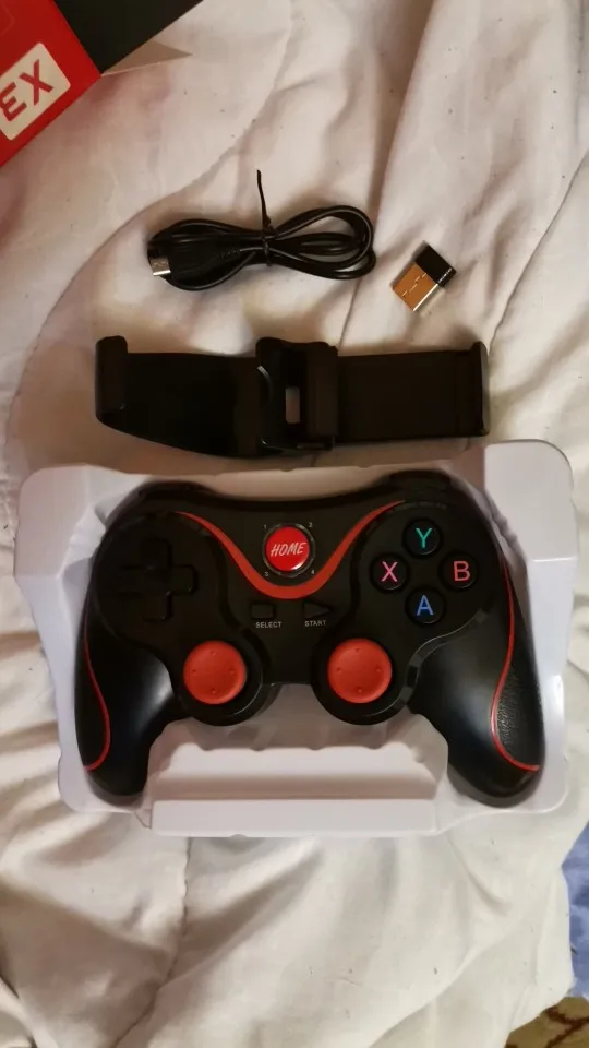 Геймпад рабочий, подключается, работает. Читайте инструкцию по подключению, в зависимости от того к какому устройству подключать, требуется нажимать определённое сочетание кнопок. С компом работает и по блютуз и по проводу, за свои деньги отлично!