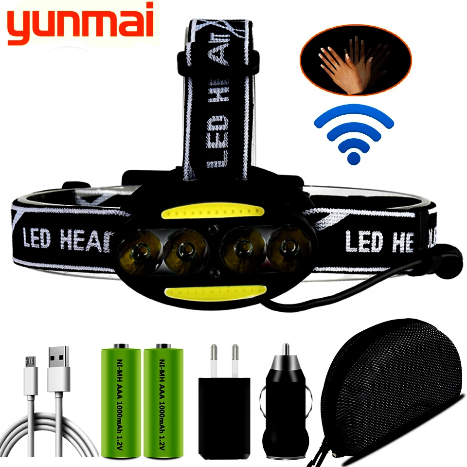 Светодиодный налобный фонарь XM-L T6 с датчиком, Головной фонарь с ...