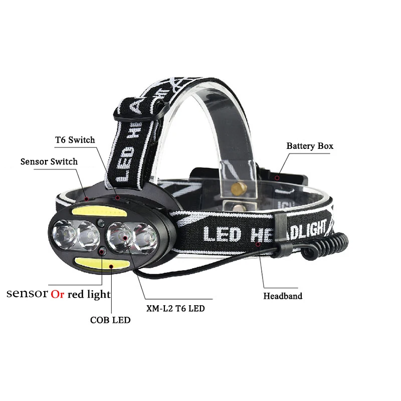 Светодиодный налобный фонарь XM-L T6 COB, водонепроницаемый налобн...