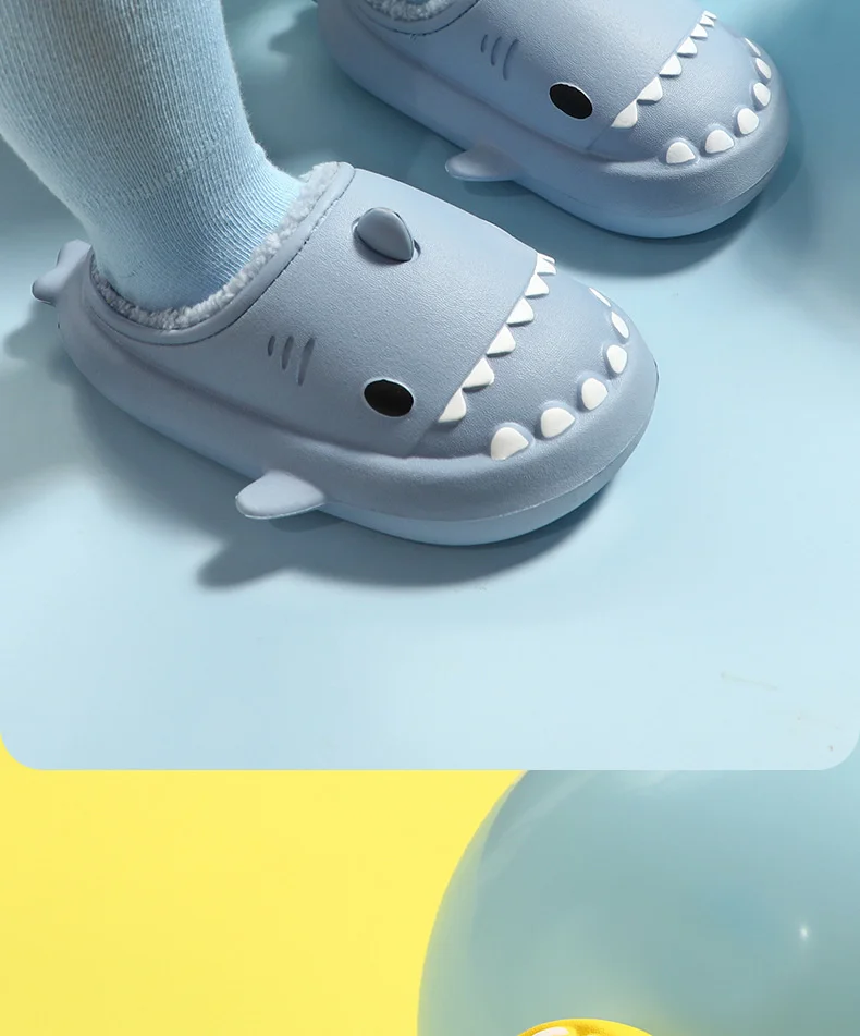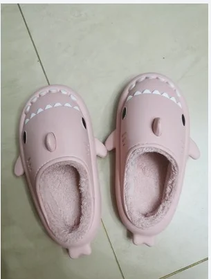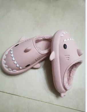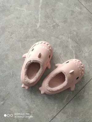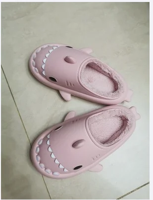 Домашние тапочки для пар, зимние домашние тапочки с мультяшными акулами, детские тапочки, женские домашние водонепроницаемые плюшевые тапочки на толстой подошве для мужчин