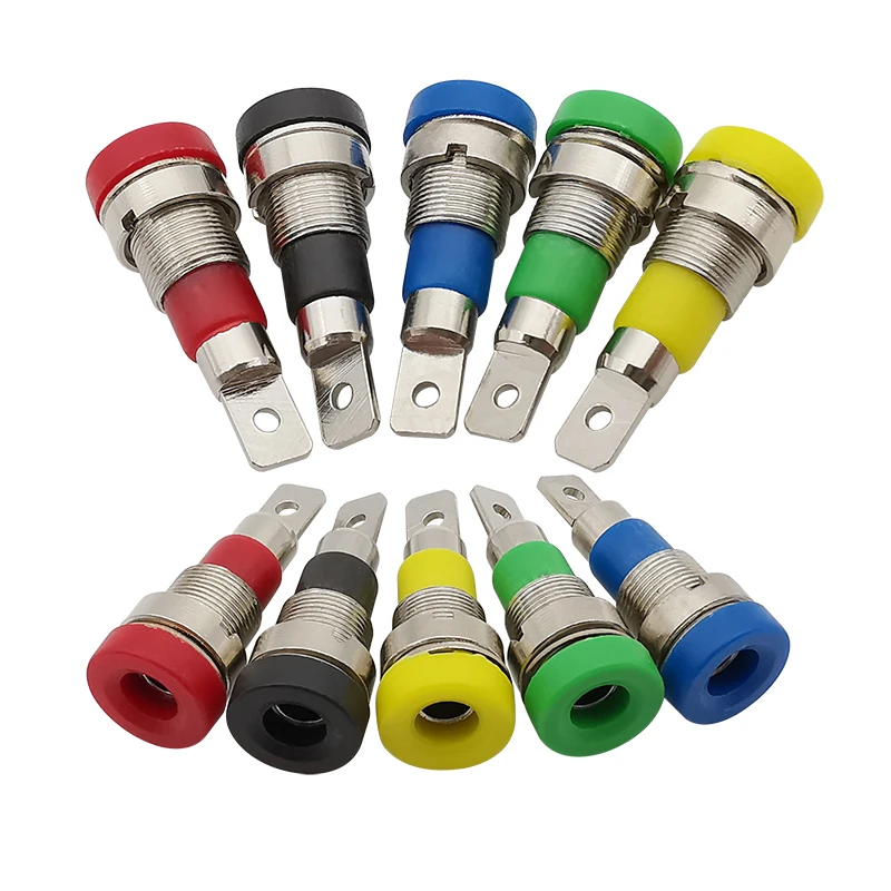 4 мм разъем типа банан, гнездовой разъем типа банан, крепление на панели, переходник с винтовой клеммой для 4 мм вилки типа банан, красный, черный, желтый, зеленый, синий цвета