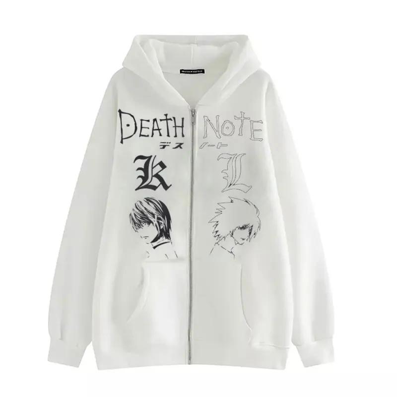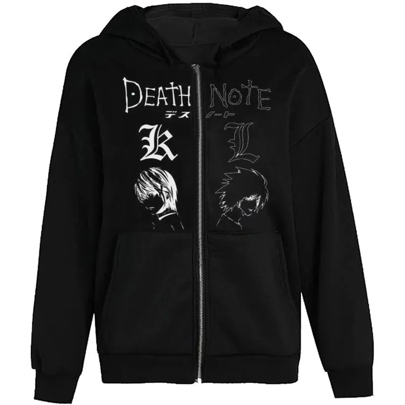 Толстовка на молнии с надписью death note kawaii, прямая продажа, куртка в стиле Харадзюку y2k, нечеткая, нечеткая, kpop, кавайная одежда с длинным рукавом, Женский Джек