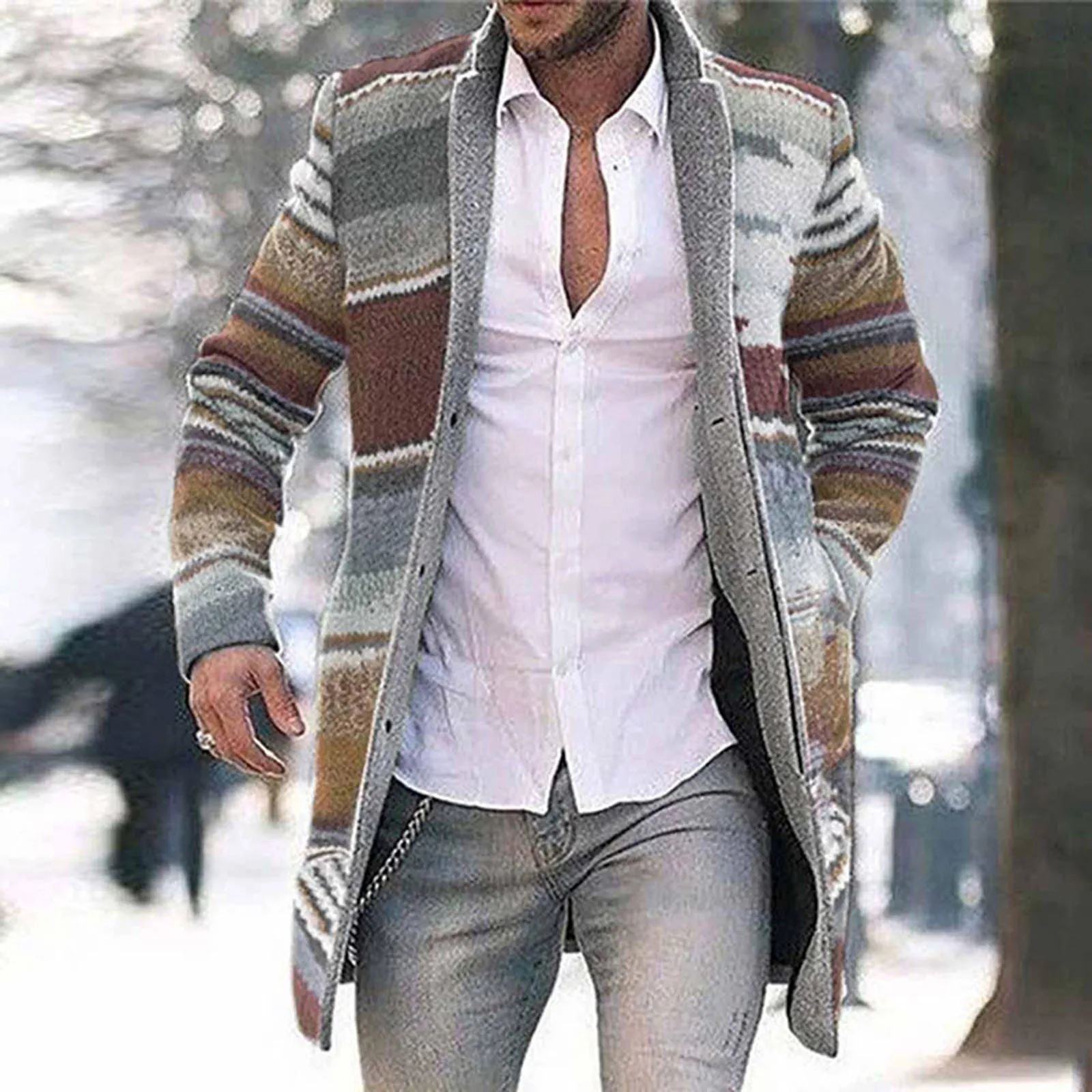 Мужской кардиган средней длины с капюшоном, Ветровка с принтом, пальто с длинным рукавом