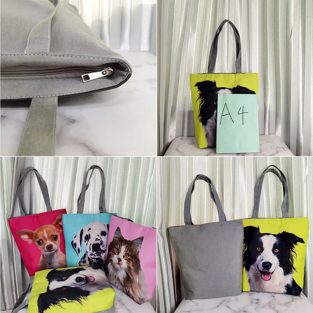 Сумка-шоппер женская с принтом собаки, повседневная Сумочка на плеч...