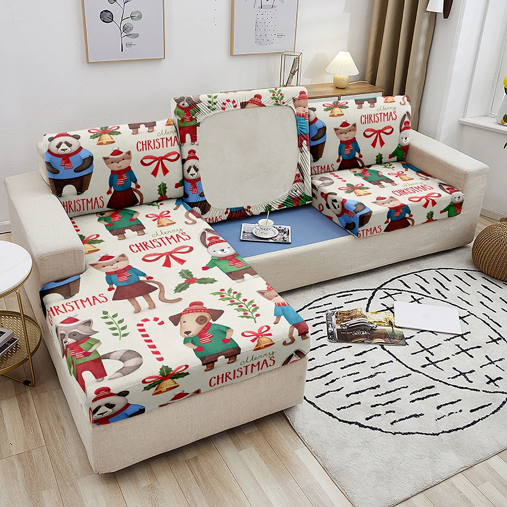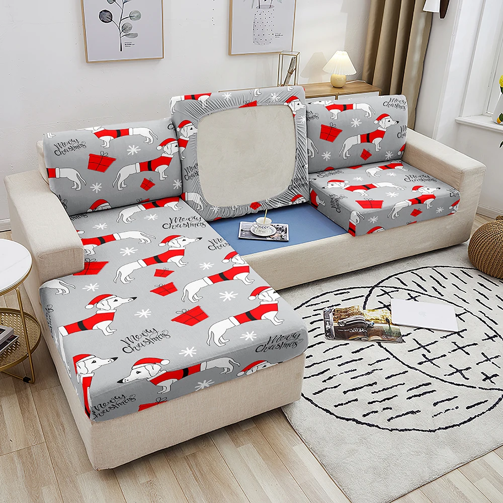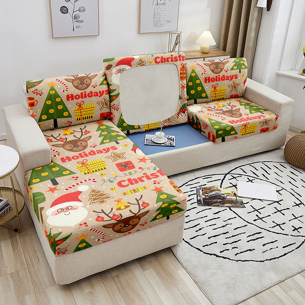 Защитный чехол для мебели с надписью "Merry Christmas", эластичные Чехлы для дивана в гостиную, эластичный чехол для дивана L-образной формы, чехол для подушки на сиденье дивана