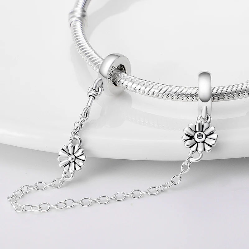 Цепочка с подвеской в виде цветка, серебро 100% пробы
