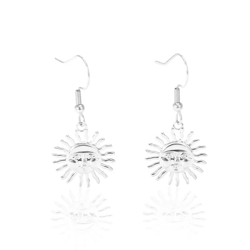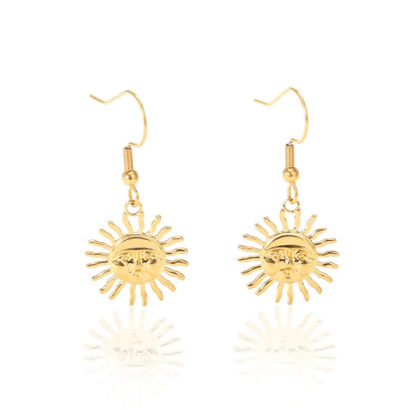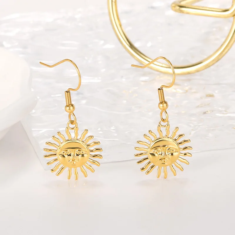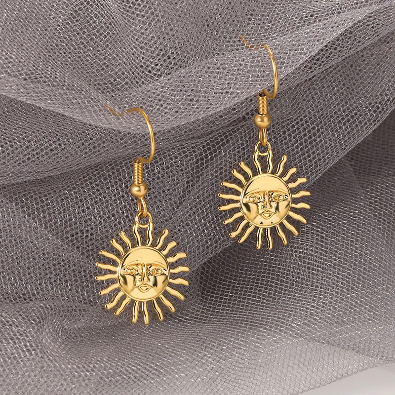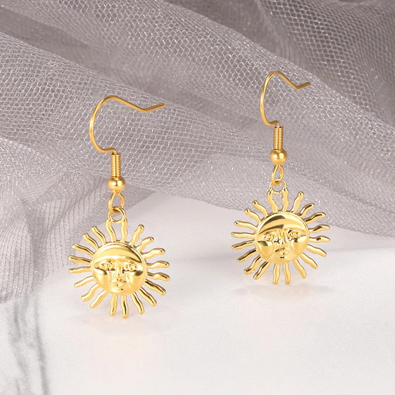 Модные ювелирные изделия из нержавеющей стали, солнце и фотоэлемент, небесный золотой цвет, солнце, лицо, висячие серьги, лучший друг, подарки BFF 2021