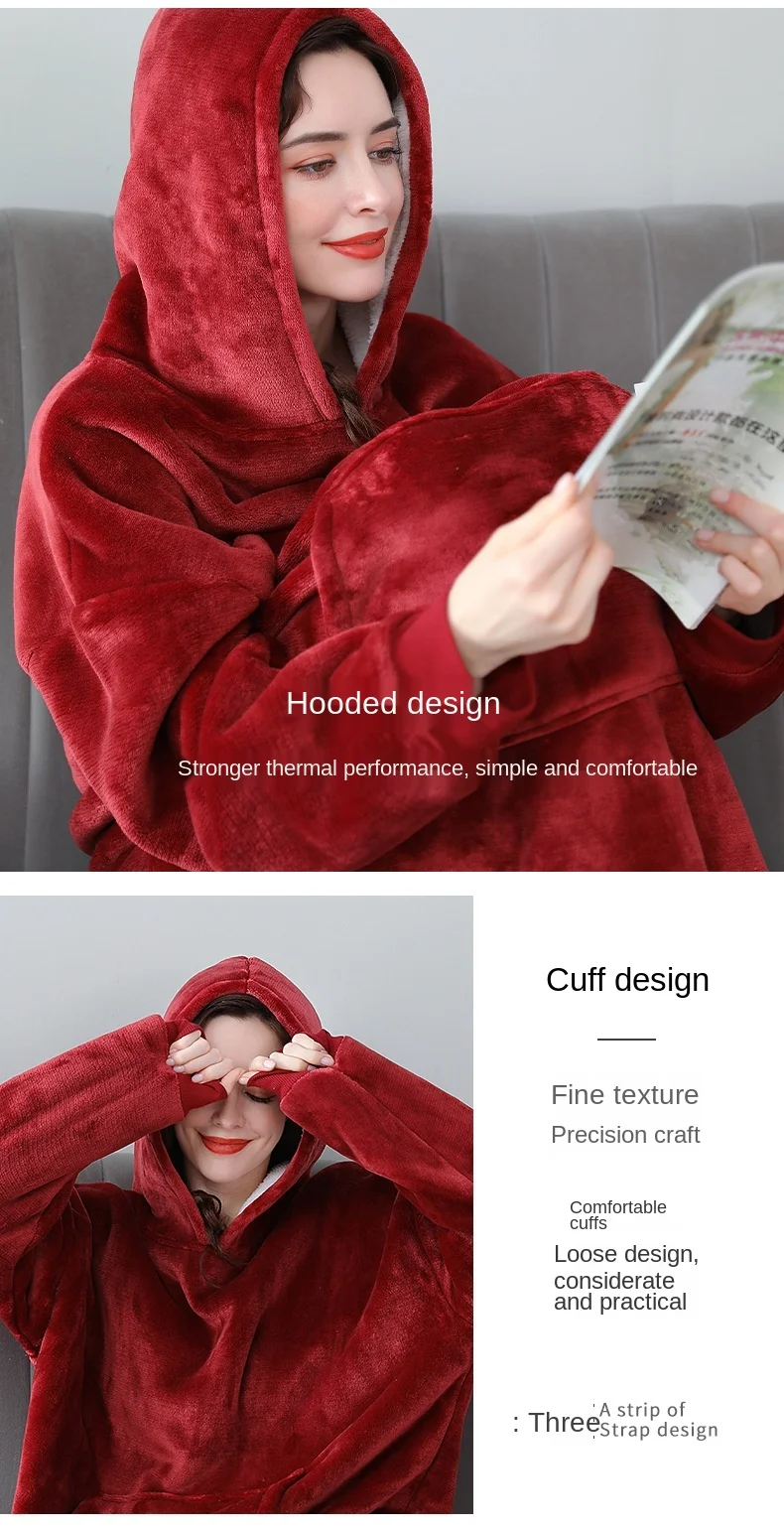 Утолщенный теплый плотный свитер с капюшоном для влюбленных, одеяло с большим карманом для улицы, унисекс, многофункциональное Ночное платье, халаты