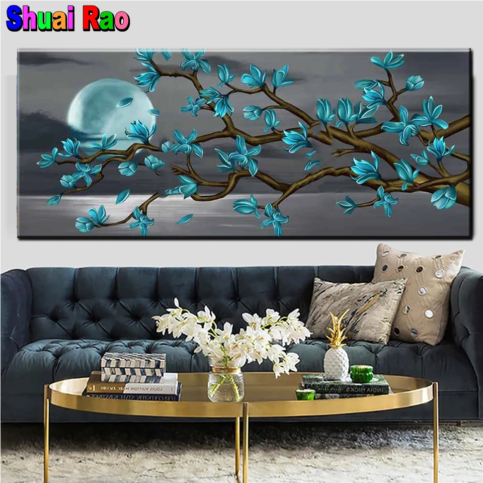 Лунный пейзаж Орхидея 5D Сделай Сам, алмазная картина Мозаика Цветок полная дрель Алмазная вышивка подарок стежка Настенный декор