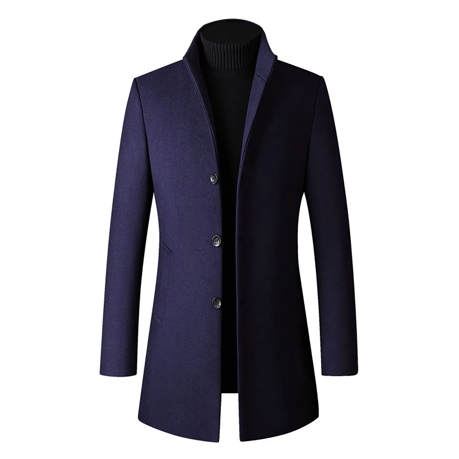 Мужское осенне-зимнее пальто, однотонный тренчкот с длинными рукавами и воротником-стойкой, Мужская ветрозащитная ветровка, модное мужское пальто