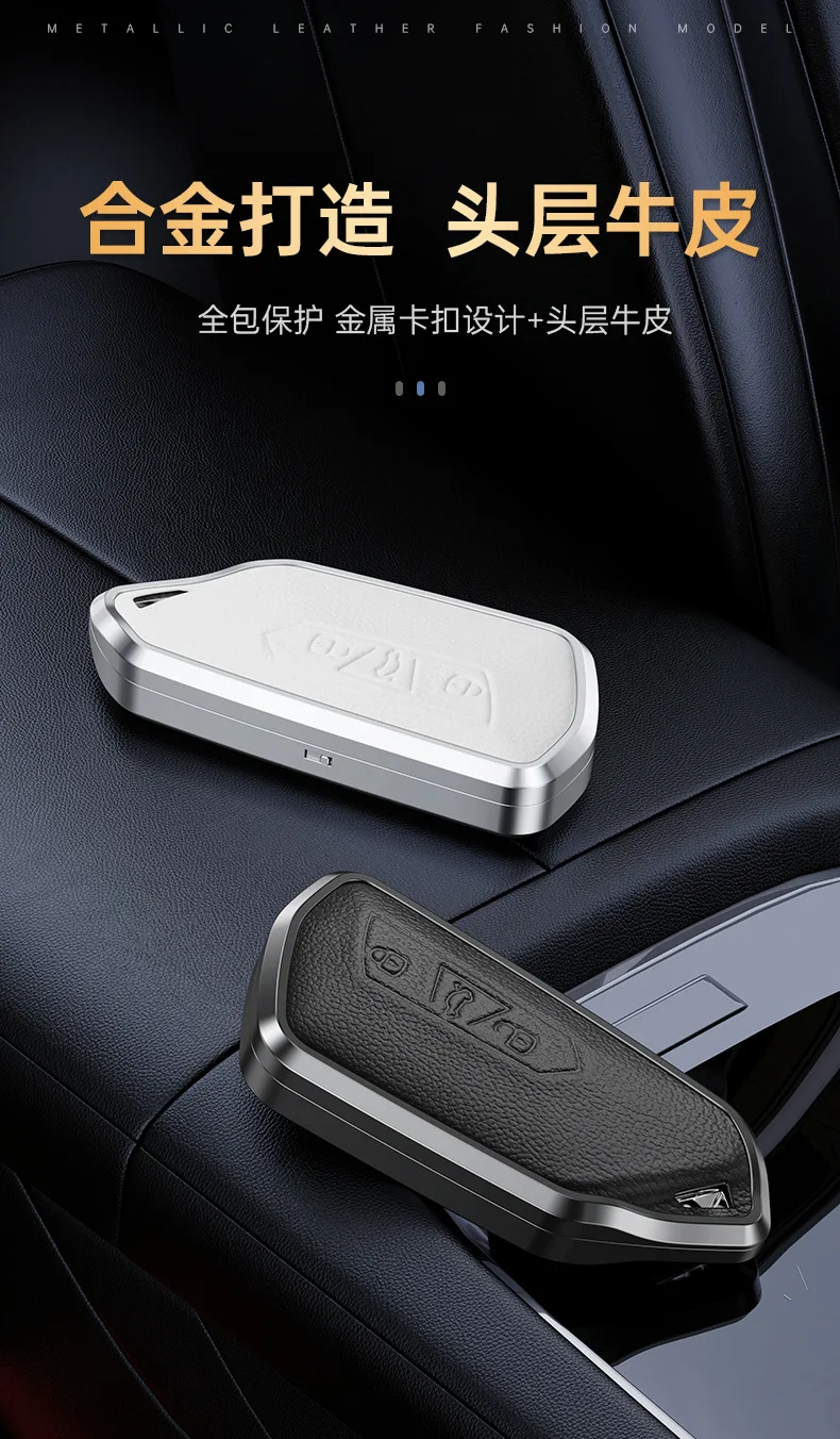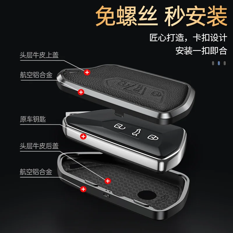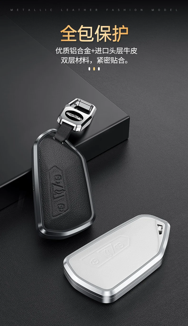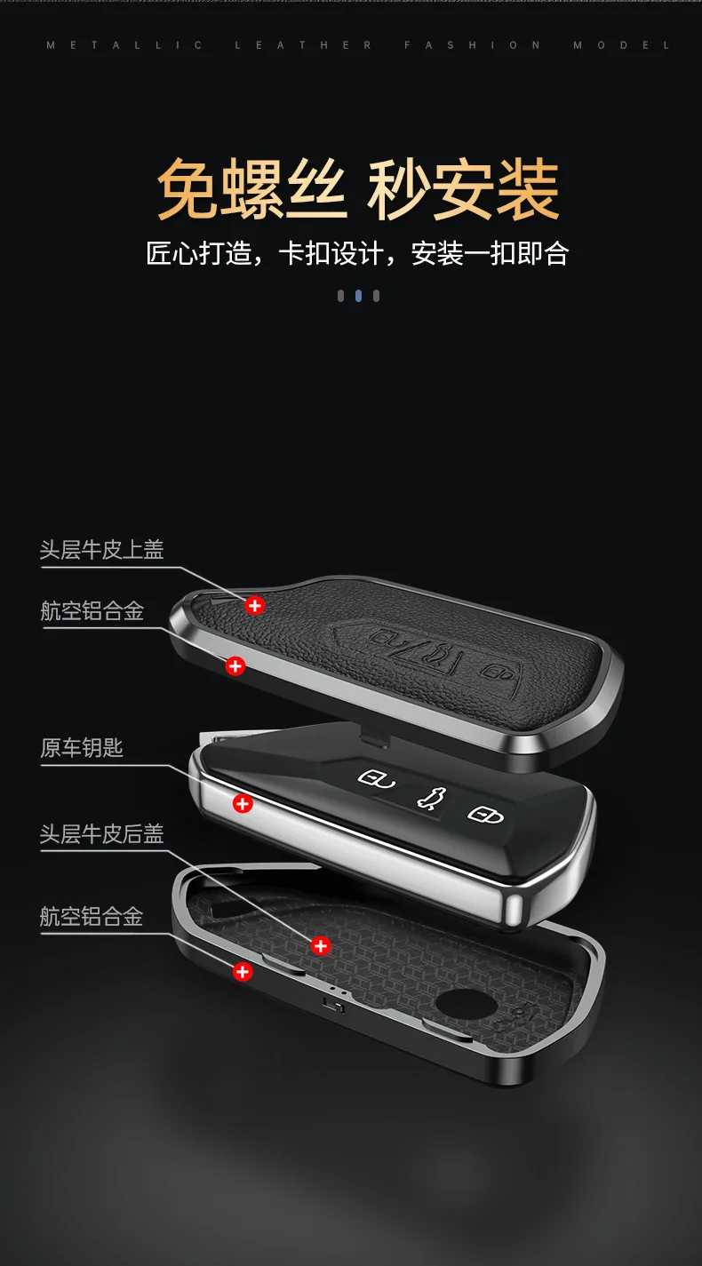 Название продукта: чехол для автомобильного ключа из алюминиевого сплава и кожи