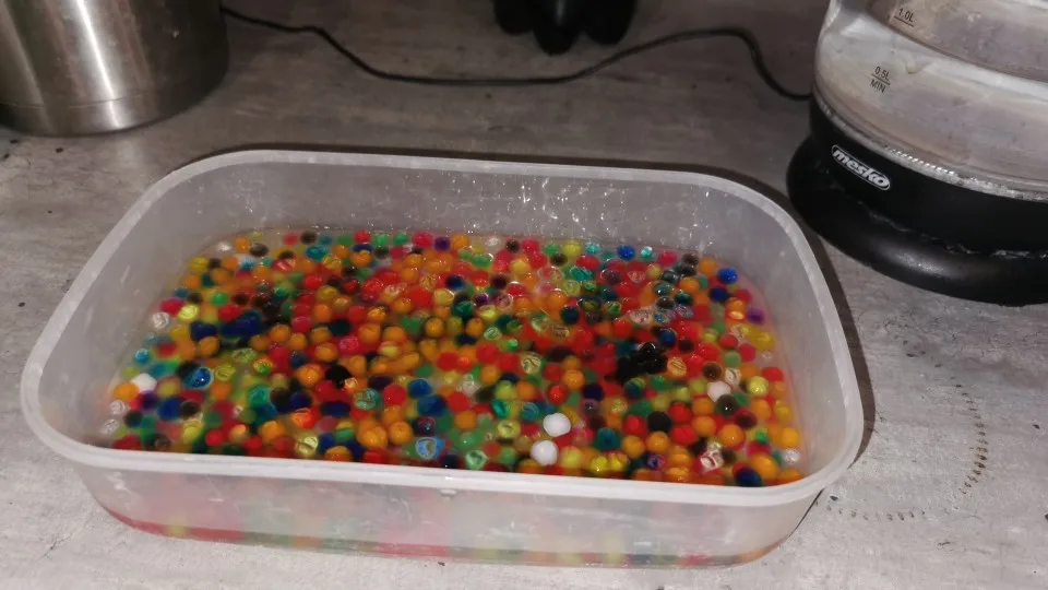Как использовать:1. Добавьте один в один галлон воды или 1 столовую ложку в 2 кварта воды.(Для больших бусин Используйте дистиллированную воду).2. Дайте 6-12 часов для поглощения воды бусинами.3. Сливайте лишнюю воду с помощью сита или дуршлага.4. Налейте готовые бусины в вазы и миски.