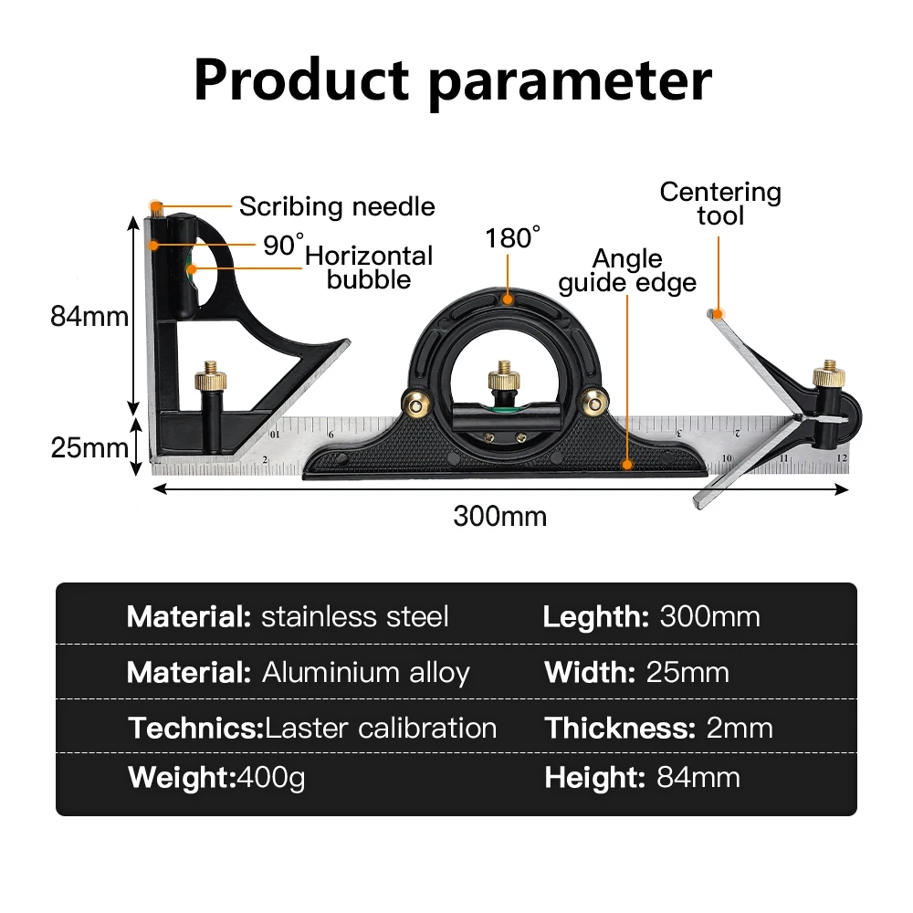 Model Number1Precise Stainless Steel Measuring Tools Aluminium Combination Square