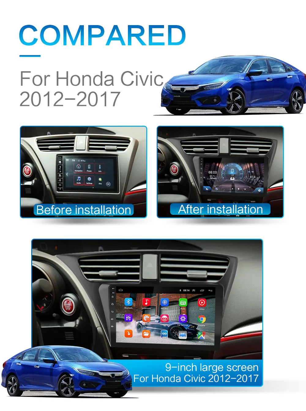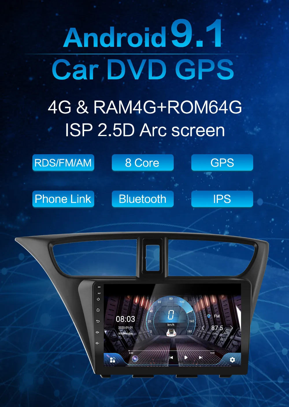 Android 10,0 автомобильное радио для Honda Civic 2012 2013 2014 2015 2016 2017 9 дюймов 1024*600 восемь ядер wifi Bluetooth Видео Аудио мультимедиа 2 din автомобильный dvd плеер