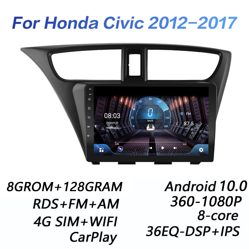Автомагнитола 8G + 128GROM для Honda Civic Hatchback 2013-2015 DSP 2 din Android 10,0 4G NET, мультимедийный видеоплеер BT carplay