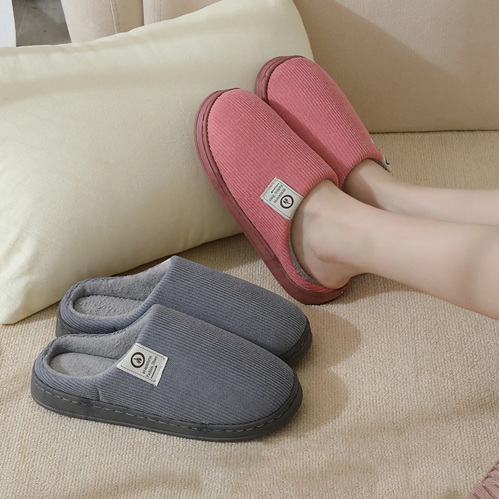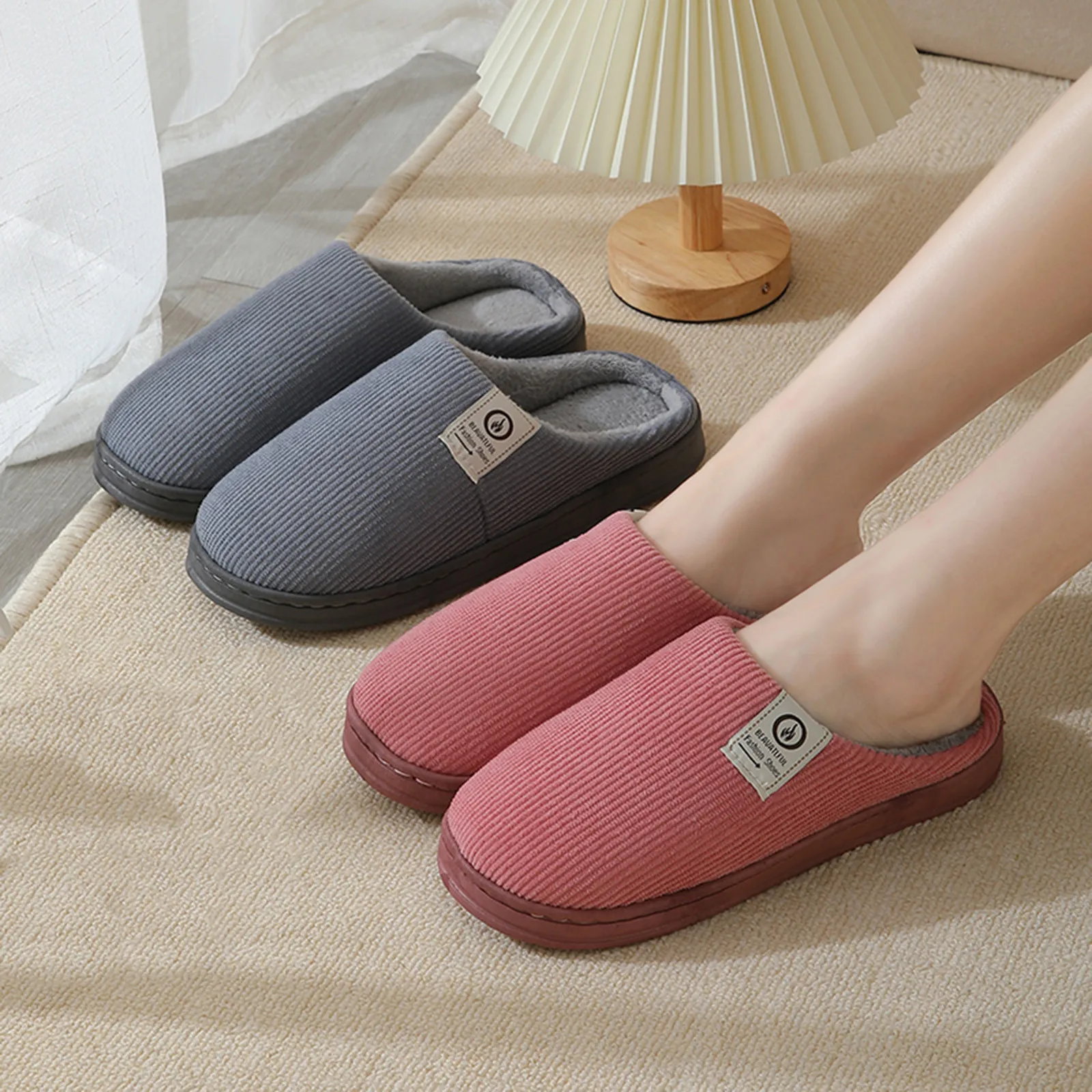 Домашние тапочки унисекс, хлопковые, на мягкой подошве, без застежек, зимние, тапочки с мягкой подошвой