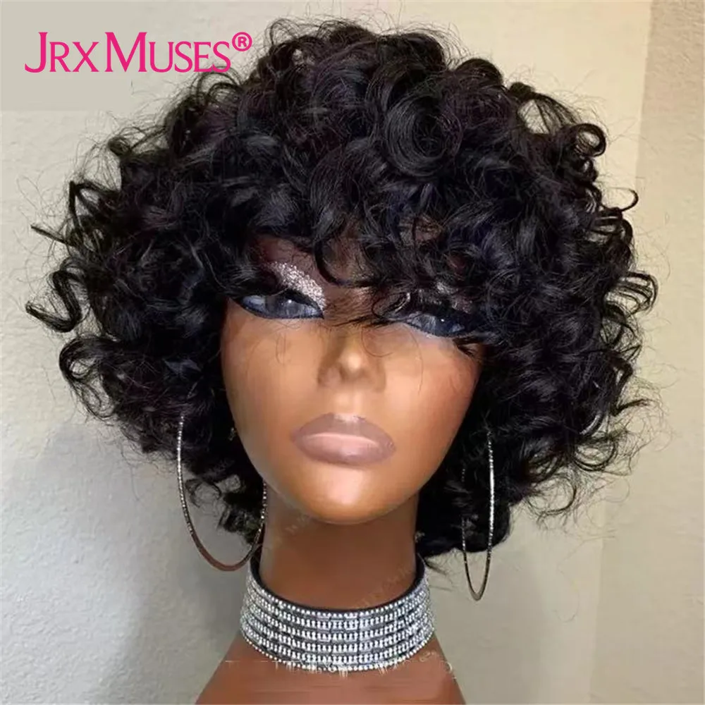 Парики из человеческих волос с кудрявыми розами, без клея, полностью машинное изготовление, короткий, Боб, Fumi, вьющийся парик с челкой для черных женщин, перуанские волосы Remy