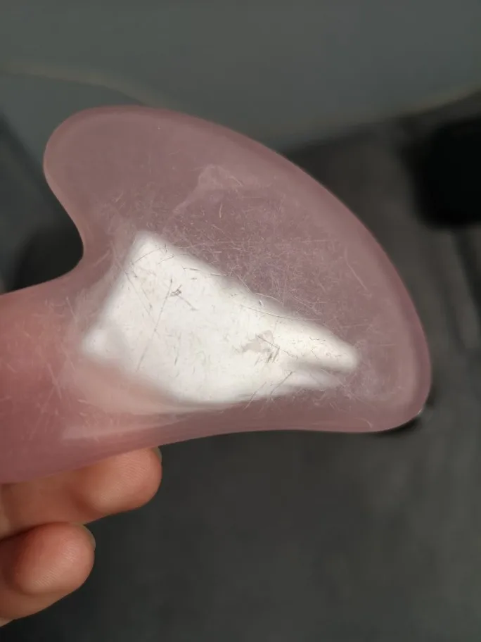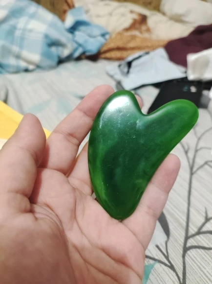 Не специалист в камнях, но мне кажется это полностью пластик. Да, он гладкий, но легкий и не холодный на ощупь (как например бижутерия из розового кварца). Почта везла 2 месяца, бросили в ящик. Попробую крем наносить и массаж конечно, но буду заказывать в другом месте именно камень.