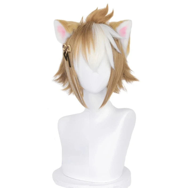 Парик для косплея Gorou, короткий, коричневый, белый, с ушками, из ...