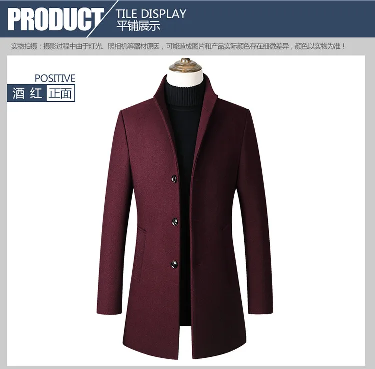 Мужской Тренч, Мужское пальто, новое осенне-зимнее шерстяное пальто, повседневное пальто + однотонное пальто на пуговицах с карманом, четыре цвета, большие размеры