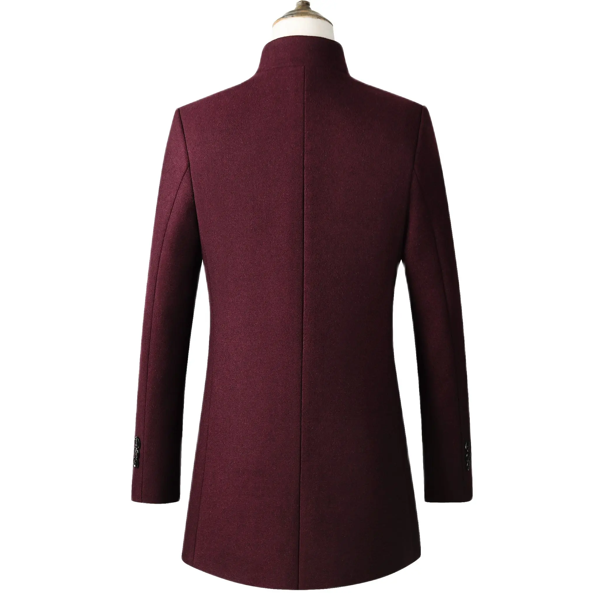 Мужское шерстяное пальто с воротником-стойкой, утепленное деловое п...