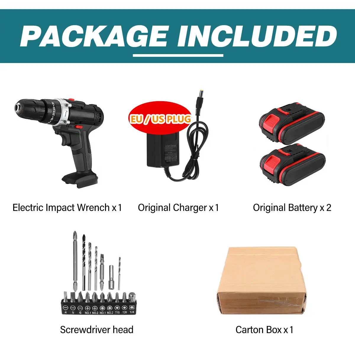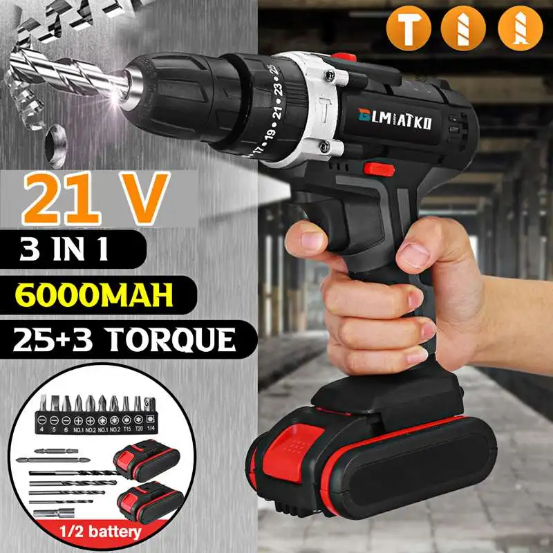 Электрическая дрель три функции с ударом 6000mAh 21V два заряда или Одна зарядка