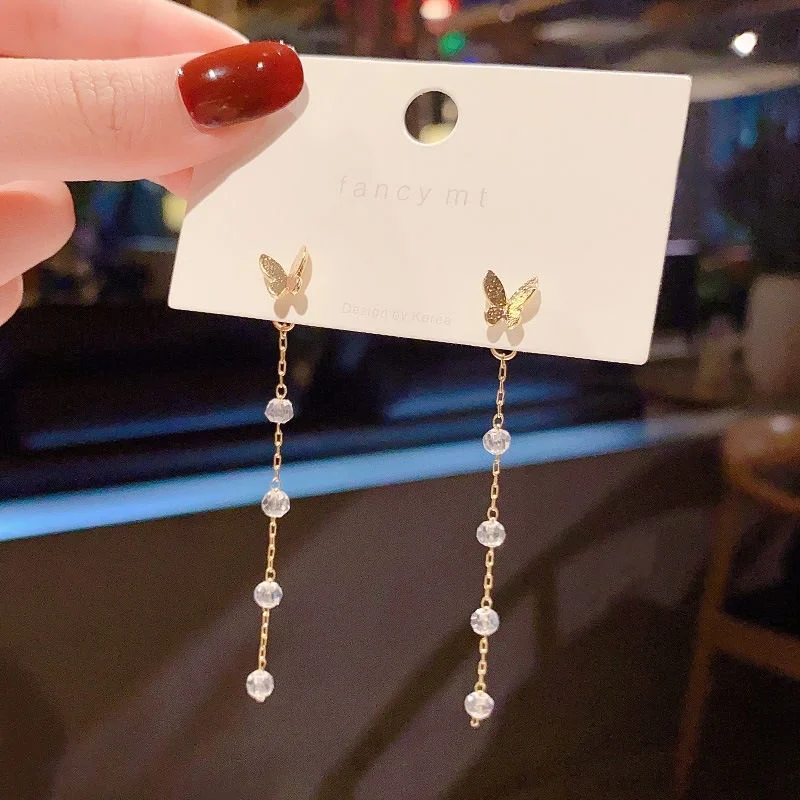 Серьги-подвески женские, с Луной, звездой, цветком, кристаллами, модные корейские драгоценности