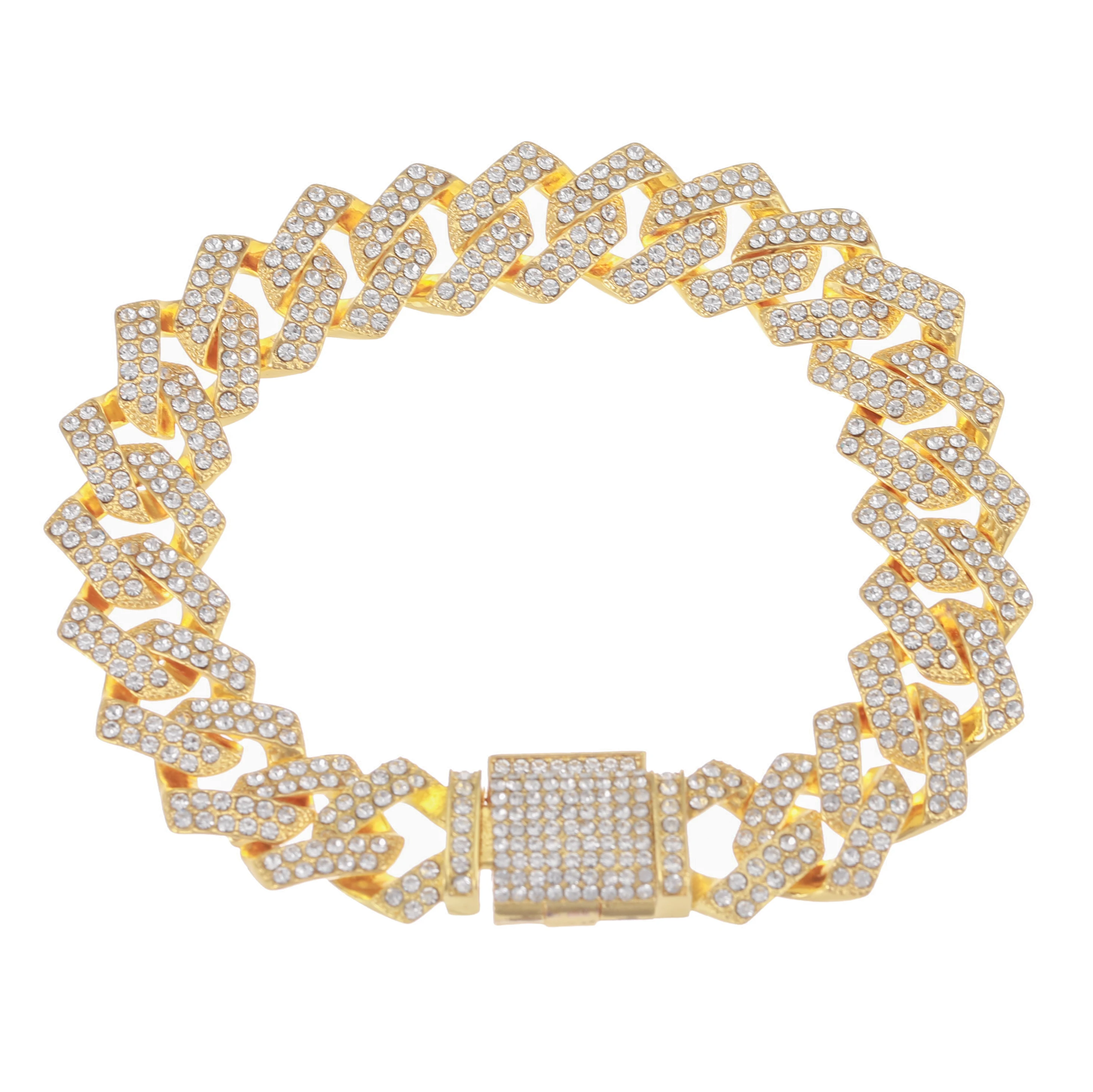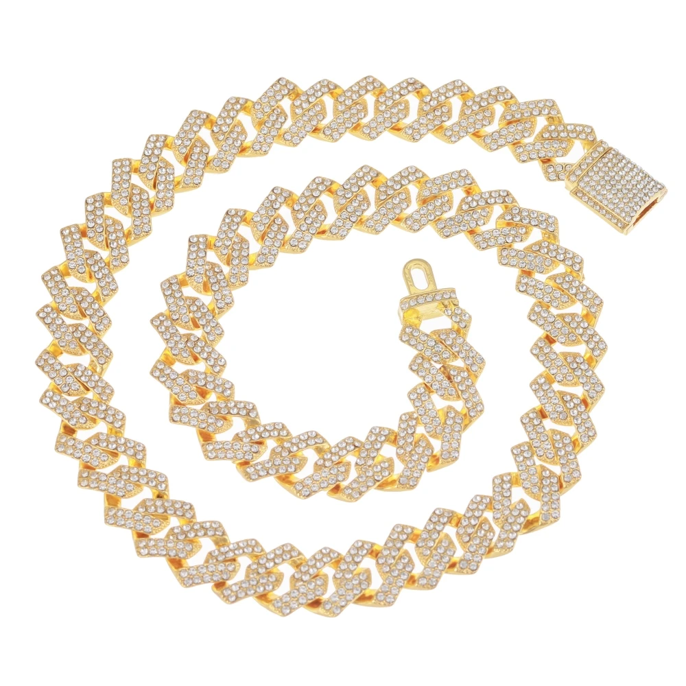 Мужской чокер из кубинской цепи, сверкающее ожерелье в стиле хип-хоп 13 мм, колье золотого и серебряного цвета с фианитом, с застежкой стразы, ювелирное изделие в стиле рэпера