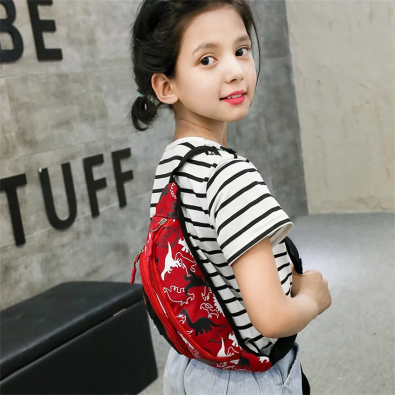 Детская поясная сумка для девочек и мальчиков, забавная нагрудная Сумочка с мультипликационным динозавром, Детский кошелек на ремне, мешок для денег, Детская поясная сумка на молнии