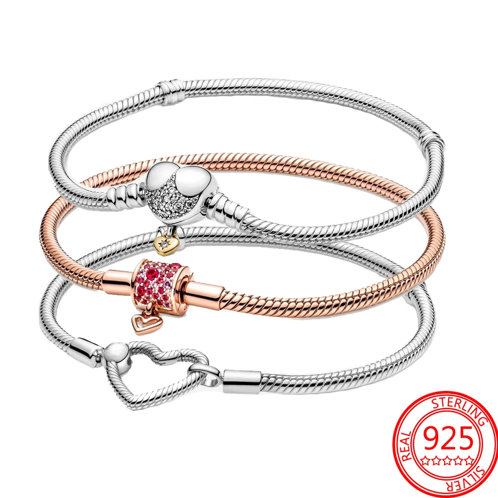 Женский браслет из серебра 925 пробы, с застежкой в виде сердца