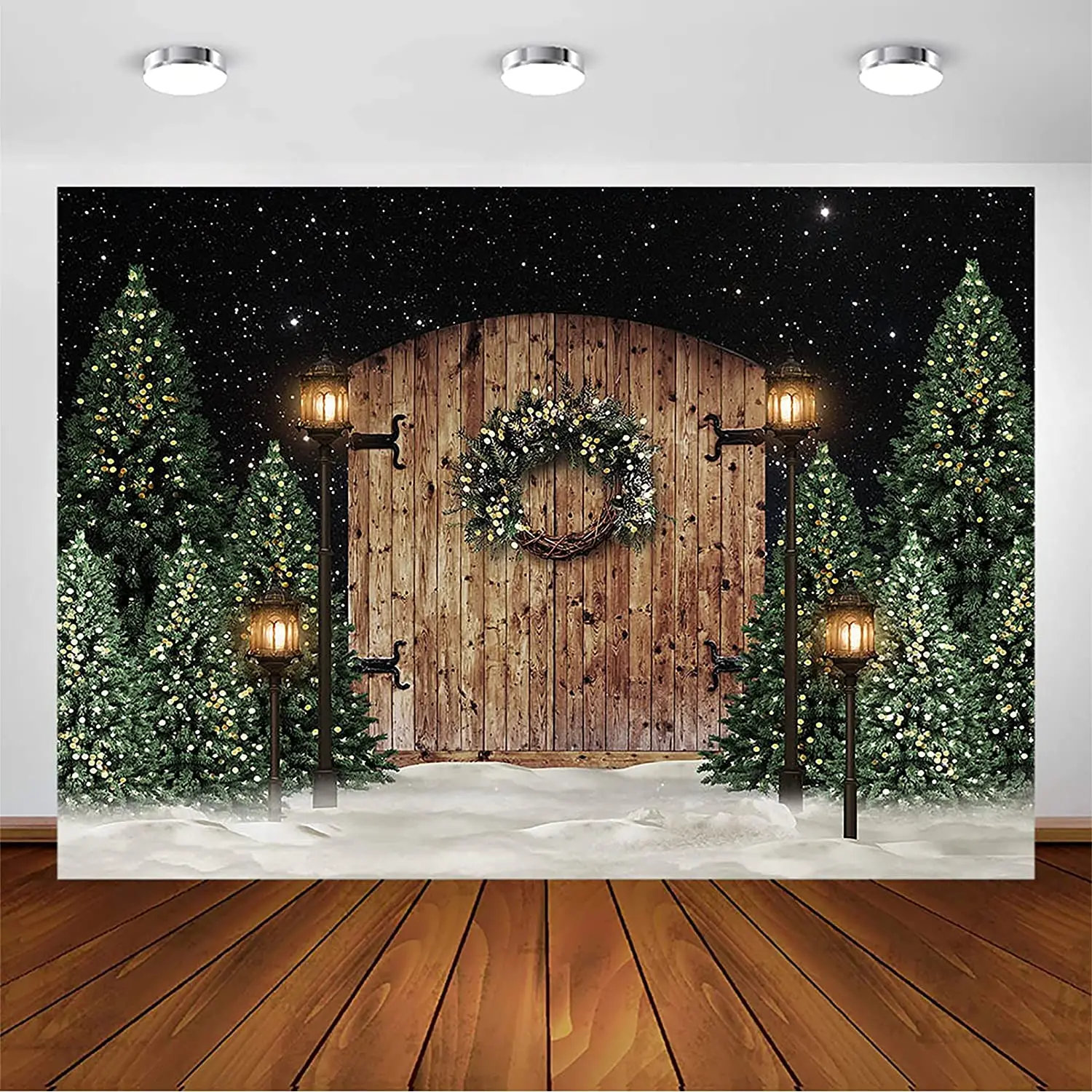 Рождественские фоны для зимней ночной снежной сцены фон винтажная Арка деревянная дверь передняя Рождественская елка семейный сбор Вечерние icon star icon star icon star icon star icon star