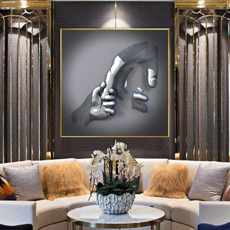 Настенная статуя художественные плакаты и принты, креативный жест кулака, Картина на холсте, Современная нордическая гостиная, украшение для дома