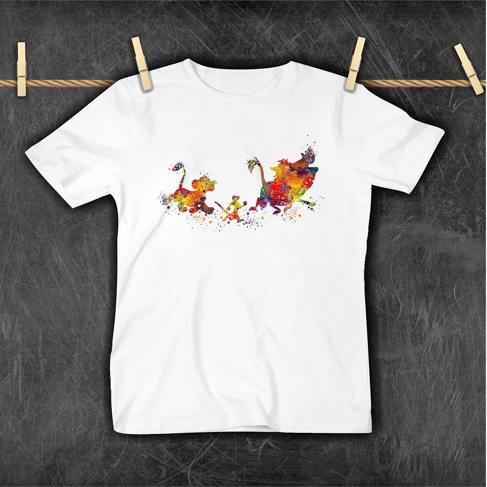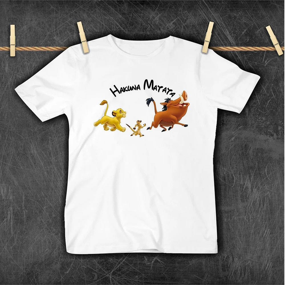 Детская футболка с принтом хакуна матата, в стиле Харадзюку, с изображением милого короля Лев, Детская футболка с героями мультфильмов, футболка с короткими рукавами