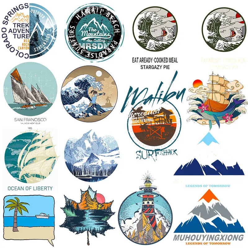 Нашивки с волнами в дикой природе, термоклейкие термонаклейки для одежды, нашивки для одежды с изображением гор